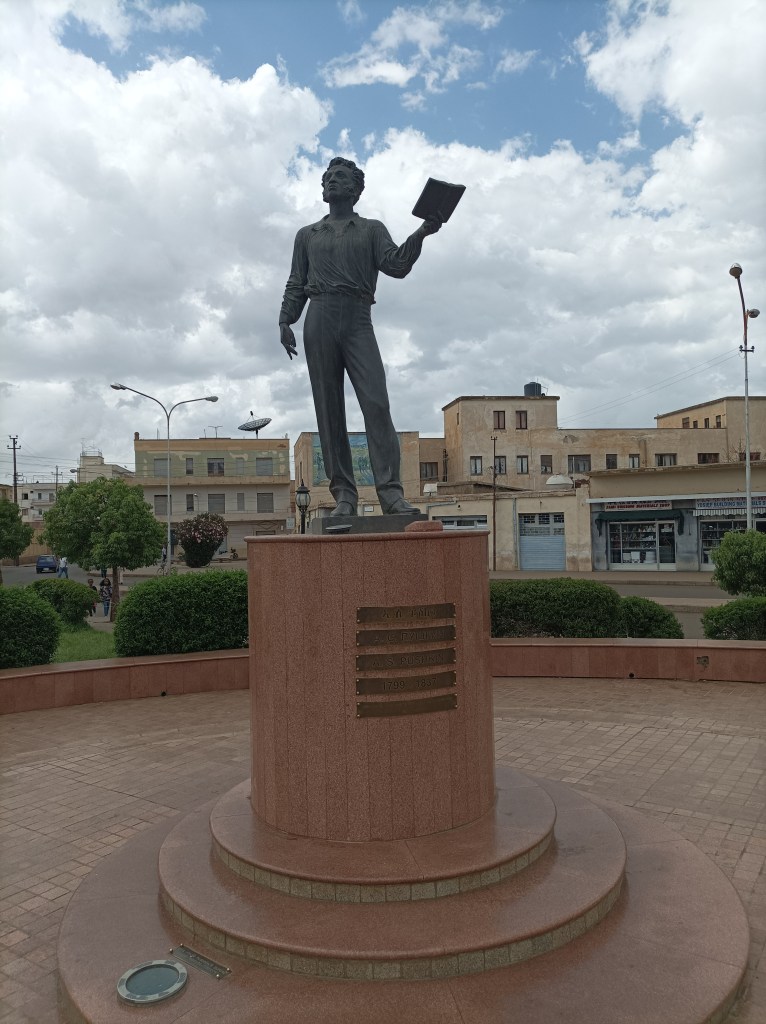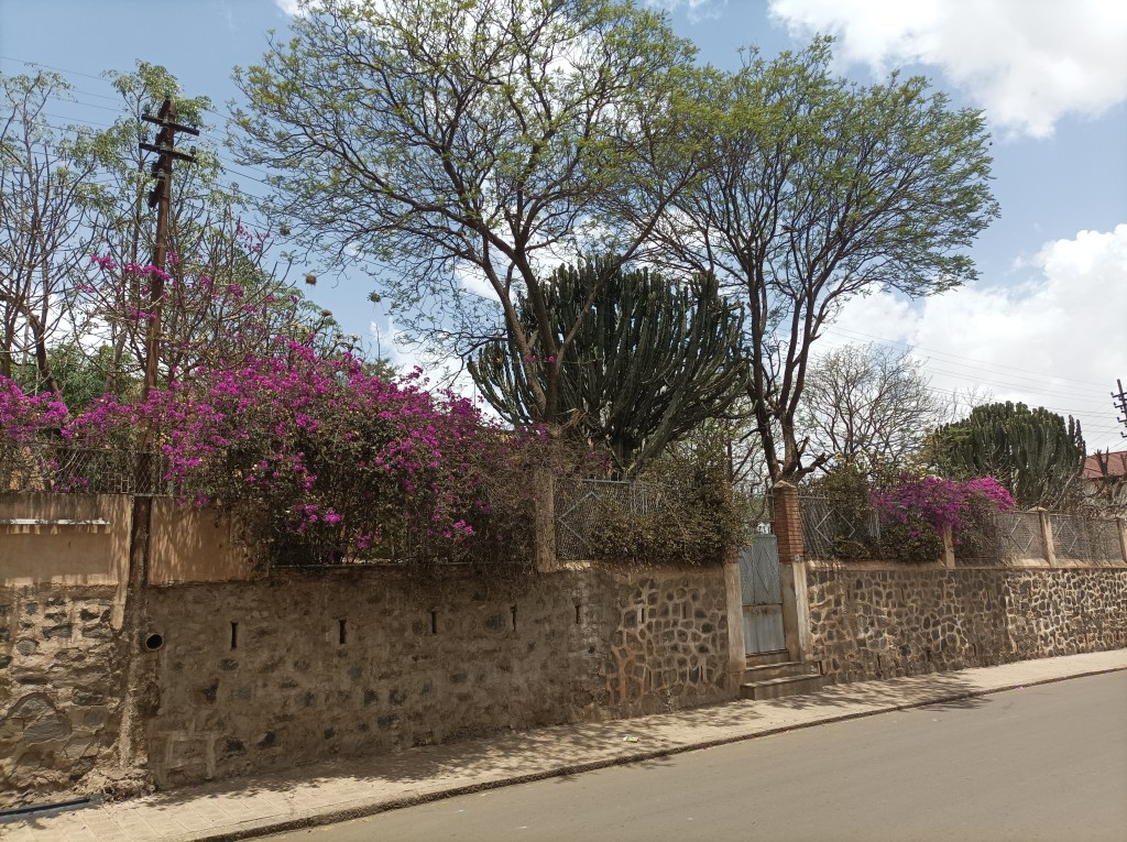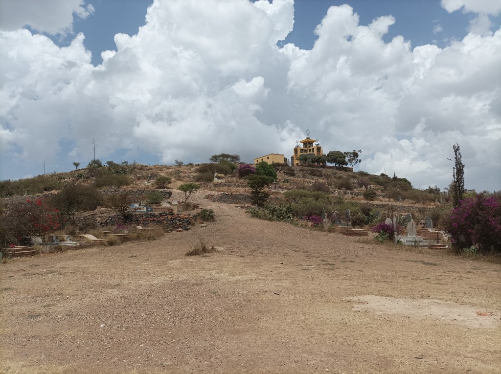 Dobro nahranjeni, nastavljamo istraživati grad pa odlazimo do starog talijanskog groblja, kao i groblja mučenika, koje se nalazi jedno uz drugo. Nedjelja je, oba groblja su zatvorena, ne znam da li je to inače tako, no vidimo dovoljno i preko visokog zida na koji se penju brojni kaktusi i raznobojne bugenvilije, te drugo cvijeće koje daje šarenilo boja mnogim ulicama u gradu. Talijansko groblje je pomalo zapušteno, vidi se da tek ponekad netko obilazi grobove, no više ili manje u dobrom stanju, od velikih mauzoleja do malih grobova, svi su pomno ukrašeni, baš poput starog groblja u Šibeniku ili drugim gradovima koji su imali brojno talijansko stanovništvo na istočnoj obali Jadrana. Virimo preko zida, komentiramo, par fotki i idemo dalje do groblja mučenika. To je groblje poginulih u ratu ili možda je bolje reći ratovima, s obzirom da su se događali u nekoliko navrata. Drvoredi dijele nekoliko polja groblja, a svi nadgrobni spomenici su istog oblika, na svakome je ime, godina rođenja i smrti. Šutimo, toliko je grobova, toliko života… Gotovo da grupe grobova govore o svakom sukobu, na tisuće spomenika poginulih u istoj godini, istom mjesecu, istom danu. Stanje ni rata ni mira poprima puno značenje. Etiopija se gotovo tri desetljeća nije mogla pomiriti s gubitkom kolonije, tako da je rat uvijek bio realna prijetnja. Tek posljednjih par godina je postignut sporazum i suradnja koja bi mogla osigurati dugotrajniju stabilnost.