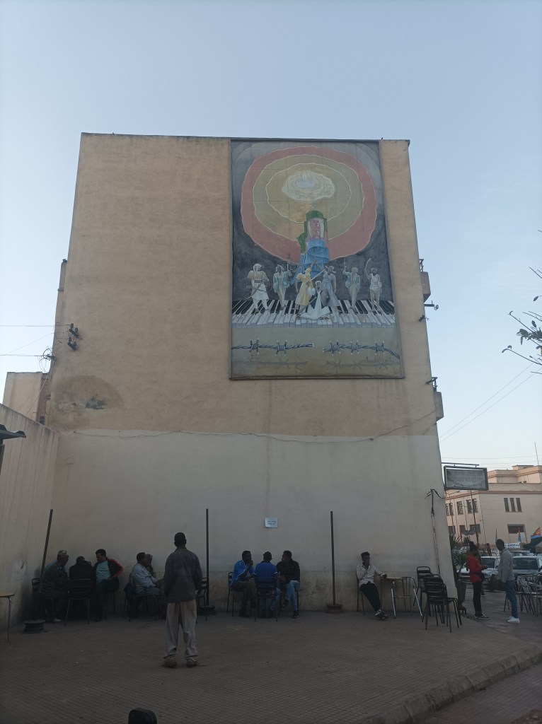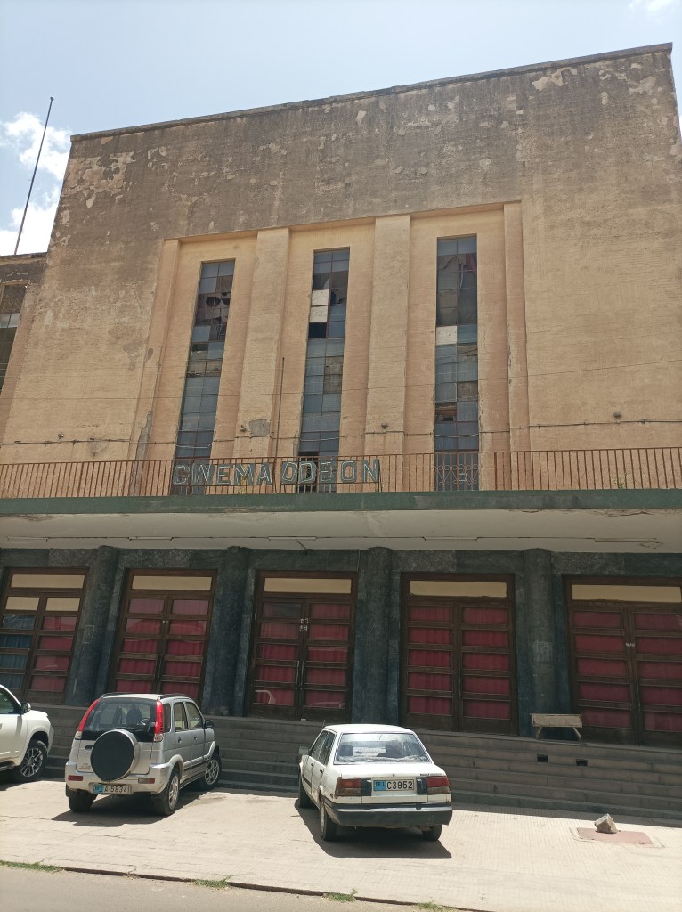 Prolazeći pokraj kina Roma, još jednog art deco zdanja, čujemo muziku i pjevanje pa smo bacili pogled sa strane da vidimo što se događa, jer smo vidjeli da kraj otvorenih vrata stoji više ljudi. Mislim da su stali kao i mi, pogledati što se događa ili vidjeti prijatelje koji uvježbavaju nastup. Kombinacija tradicionalne i suvremene muzike i plesa, cijeli omladinski orkestar, djevojke i momci koji plešu, pjesma na tigrinji. Ne razumijemo, no zvuči zanimljivo, prepoznatljiv zvuk koji smo čuli već više puta, od televizijskog programa do javnih nastupa.