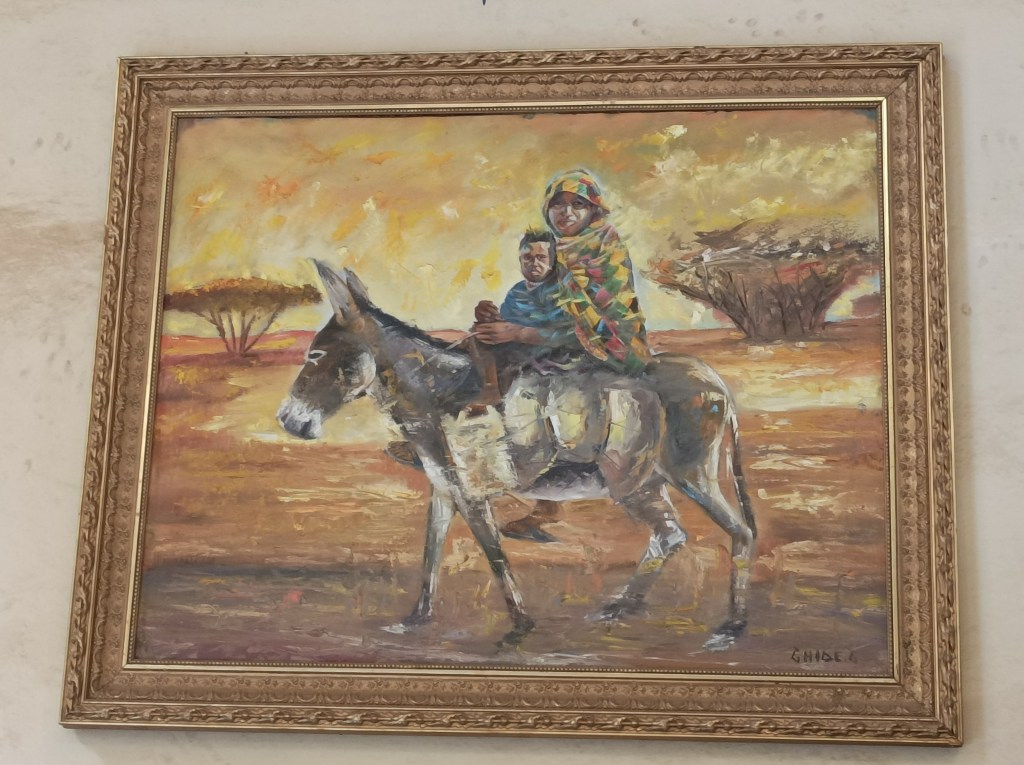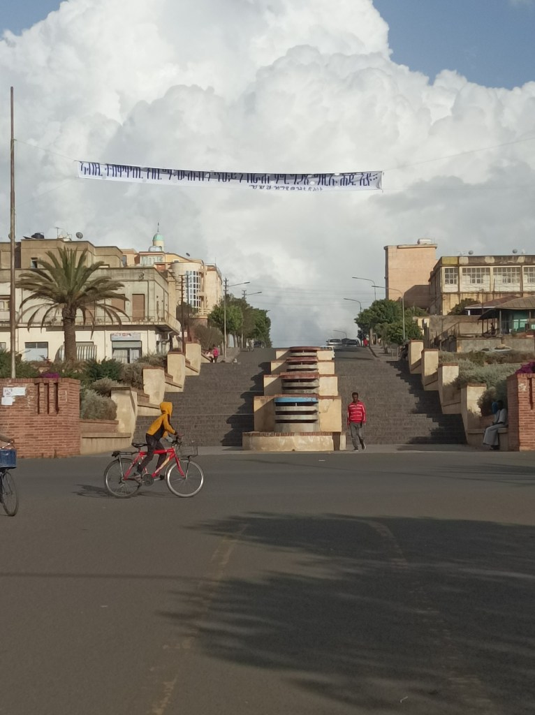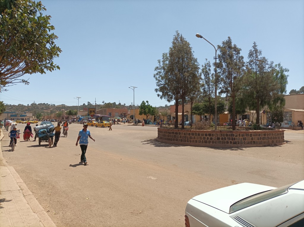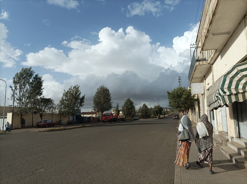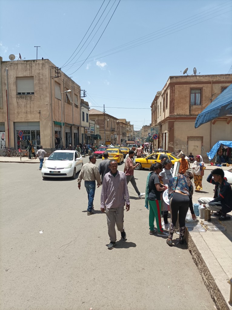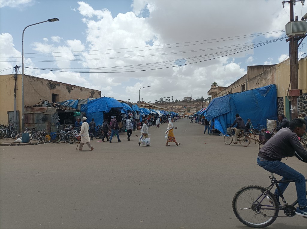 Subota je sajmišni dan. Zapravo, na mnogo načina je to svaki dan u tjednu, ali subotom je posebna gužva, sve radi, iznosi se razna roba na ulicu, tržnicu, ispred dućana, vika na ulici, prodavači nude posuđe, povrće, žitarice, izvikuju cijene… Malo pripreme i kratko samostalno učenje par riječi tigrinje bilo je dovoljno da razumijemo brojeve koje izvikuju, svako toliko jedno drugome potvrdimo “jesi čula, traži deset za banane!” i svaka riječ koju razumiješ te veseli jer, eto, nije sve potpuna nepoznanica. Gužva je na trenutke tolika da se jedva probijamo, ljudi, stvari, automobili, bicikli, trokolice, kolica s povrćem, pijetlovi zavezanih nogu i pokoja koza… Ali sve funkcionira, ljudi paze da se ne guraju, tu i tamo nas netko dotakne, no svi prolaze svojim putem, sve je ok, a mi se još uvijek pokušavamo naviknuti, skužiti dinamiku, maknuti s puta ili proći dovoljno brzo. Puno je dojmova, prvi dan, nemaš pojma gdje si, ni geografski, ni kulturološki. Unatoč tome, sve je opušteno, napetost da nešto ne napravimo krivo popušta svakim novim korakom, učimo u hodu.