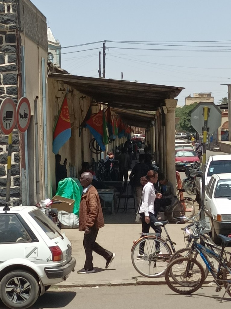 Kao i bilo gdje drugdje na putu, tražili smo knjižare po gradu. Ima ih puno, u ponudi imaju dosta knjiga na engleskom, ulazimo u jednu i uzimamo priručnik za učenje tigrinje, imamo već nešto u digitalnom obliku, ali ovo je lokalna knjiga, čini se dobro strukturirana. U šetanjama bacimo pogled na nekoliko njih, no jedna nam je posebno privukla pažnju jer izgleda slično kao naša knjižara pa ulazimo unutra i, srećom, nudi velik broj rabljenih knjiga na engleskom, ponešto na talijanskom i naravno, tigrinji. Brzo nam upadaju u oči knjige koje pokrivaju lokalnu povijest, detalje revolucionarne aktivnosti, sudjelovanje žena… Vlasnik pretražuje police i dok mi pregledavamo knjige, izvlači brojna izdanja koja pokrivaju neke od tema koje nas zanimaju. Uzimamo par naslova, a on nas pita hoćemo li se vratiti, pronaći će još knjiga. Može, doći ćemo za dva dana.