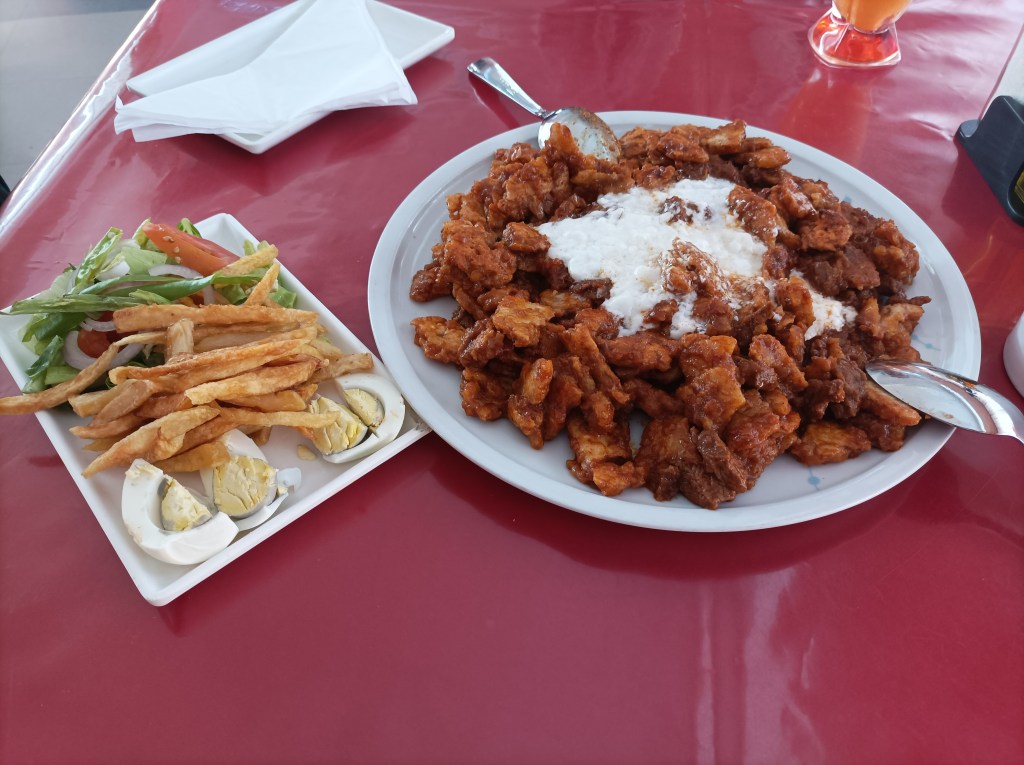 Kad već govorim o jelu, treba se osvrnuti i na taj dio života, ne kao nešto sporedno, jer osim što nas pokreće i gradi naše tijelo, hrana je odraz različitih kulturnih utjecaja, puno govori o mjestu i navikama, uči nas kako se negdje živi. Naravno, prvi izbor za neki kasni ručak nam je bila lokalna hrana u restoranu Hamasien, koji se nalazi uz sam pansion. Htjeli smo nešto što se jede svakodnevno i što je specifično za ovaj prostor. Prvi izbor je svakako inđera s tsebijem, širom i timtimomInđera je najsličnija onome što ovdje zovemo palačinka, samo što se u Eritreji radi od tefa, lokalne žitarice, a tijesto fermentira par dana prije nego se peče na širokoj okrugloj podlozi. Recimo da je promjera veće pizze. Na inđeru se slaže tsebi (varivo, razne vrste, ovisno o izboru kod pojedinog jela), širo (pire od slanutka), timtimo (gusto varivo od leće), hamli (špinat ili blitva)… Kombinacije onoga što dolazi na inđeri su različite, obično uključuju nekoliko vrsta grahorica i povrće, a ponekad meso, kuhano jaje i slično, no uglavnom su bezmesne. Sve je pikantno, nešto više ili manje ljuto, no začini nisi prežestoki, iako su u odnosu na veći dio evropskih kuhinja intezivniji. Obično se jede zajedno, inđera je tanjur/podloga i pribor za jelo, lako se trga i njome se uzimaju zalogaji hrane. Drugog pribora nema, vjerojatno se može tražiti, no nakon par nespretnih pokušaja lako se ovlada tehnikom jedenja pa zapravo niti nema potrebe tražiti nešto što i nije uobičajeno.