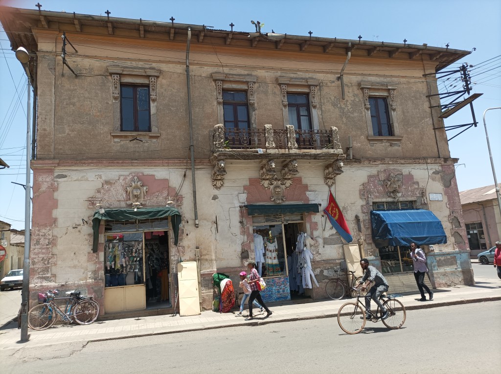Kao i sva područja koja su prelazila iz ruke u ruku raznih vladara i osvajača, u Eritreji su vidljivi tragovi mnogih utjecaja, od onog otomanskog, do najizraženijeg talijanskog. Čim smo izašli iz pansiona, našli smo se na glavnoj aveniji i pred kinom Impero, ostavštinom art deco arhitekture kojom su talijanski graditelji obilježili cijeli grad. Kino i dalje funkcionira, a pred njim je kafić i terasa na kojoj uvijek netko sjedi, piju se čaj i kava, ljudi se druže, posve slična atmosfera mediteranskoj kulturi kafića. U predvorju je stari projektor za filmske role, a na vratima raspored projekcija, najave filmova koji će se uskoro prikazivati i rukom pisan raspored utakmica koje se taj dan gledaju. Nogomet je velika stvar u Eritreji, to smo često čuli, a utakmice svjetskih klubova se gledaju na velikom ekranu i uz zvuk koji izlazi iz kina, osjećali smo se u popodnevnom izležavanju kao da živimo kraj stadiona! Nije to bilo pretjerano glasno, ne više od nedjeljnog popodneva u bilo kojem gradu kod nas, kad u ljetnim danima otvoreni prozori otkrivaju televizijski program i donose prenos utakmica uživo na ulicama. Srećom, u Asmari se ne puca kad se navija, sve je daleko smirenije od zagrebačkog “slavlja”. Ako će nekoga zanimati, nismo puno razgovarali s ljudima o lokalnom nogometu, osim što su naše izjave o tome kako ne pratimo nogomet izazvale čuđenje.